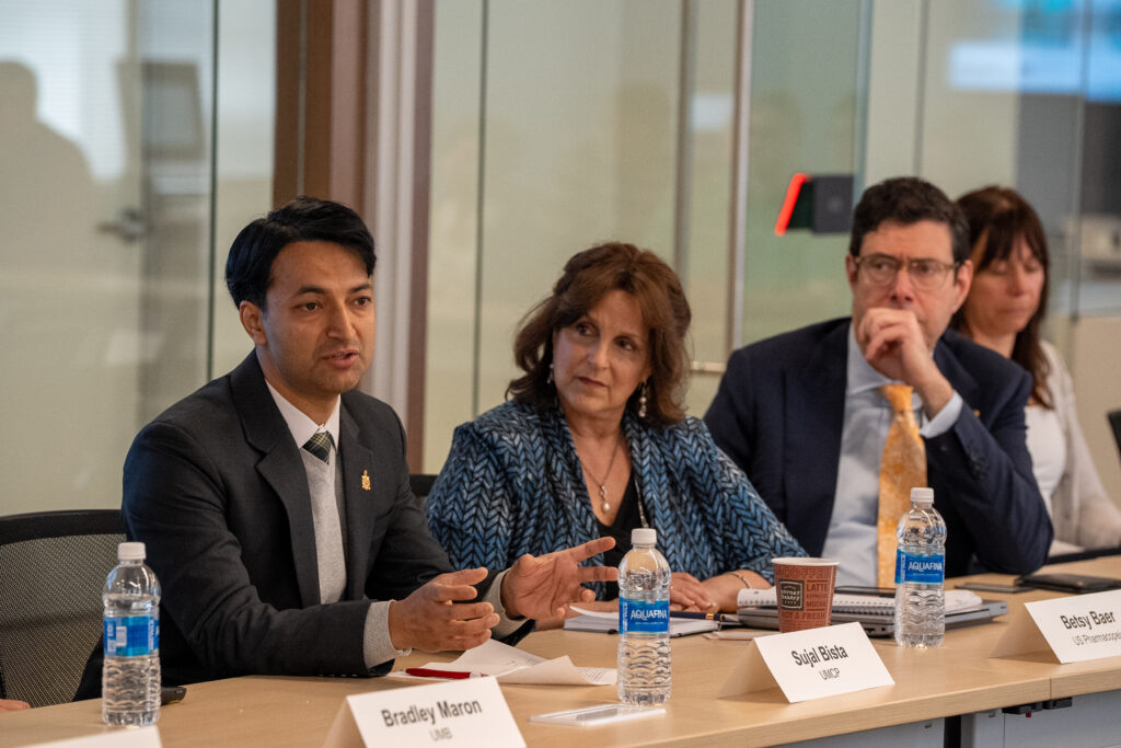 Following a tour of the space, Dean of the College of Computer, Mathematical, and Natural Sciences, Amitabh Varshney, PhD, and UM-IHC Co-Director’s Bradley A. Maron, MD, and Sujal Bista, PhD shared an update on IHC’s progress in several areas including hiring, industry and government outreach, and research.
