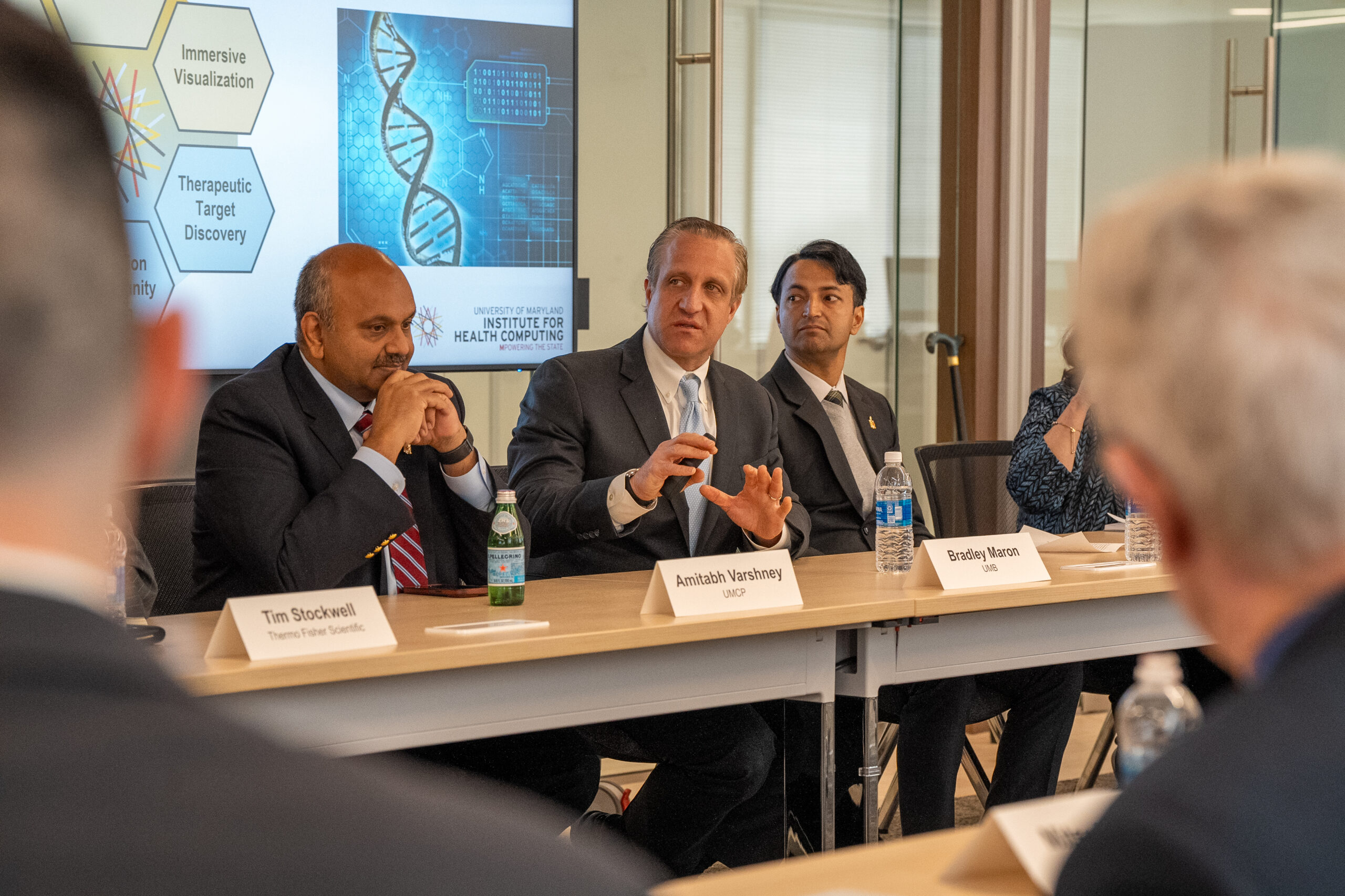 Positioned at the heart of the third-largest life science cluster in the United States, the institute is the first step in an ambitious and visionary project to transform North Bethesda into a national epicenter of computational science-enabled biomedical research, population health, and precision medicine to improve the health of the citizens of Maryland and beyond. The visit further illustrated the power of collaboration and demonstrated the synergies that exist between federal agencies, life science companies like those mentioned above, and the UM-IHC.