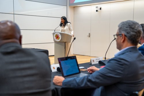 UMCP Senior Vice President and Provost Jennifer King Rice’s remarks emphasized the importance of partnerships and shared values between higher education and industry when it comes to emerging technologies, from creating societal impact to developing a strong workforce that knows how to use the technologies effectively, responsibly and ethically.