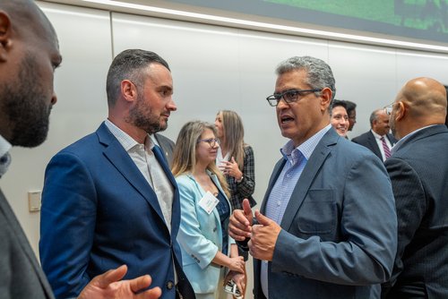 Speakers included University of Maryland Institute for Health Computing (UM-IHC) Co-Executive Director Adam Porter, a professor of computer science at UMCP. Porter shared UM-IHC’s twin missions of using advanced computing to improve well-being and quality of life, diminish disease, and enhance outcomes for all people across Maryland and beyond; and building and supporting the health, biotech and life sciences innovation ecosystem in Montgomery County. He also shared with the guests ongoing research projects focused on UM-IHC’s six technical competence centers: applied AI, immersive visualization, bioinformatics, population health, real-world evidence and adaptive clinical trials, and therapeutic drug discovery.