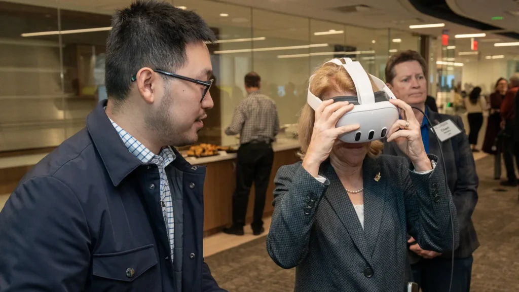 Following a ribbon-cutting ceremony, UM-IHC researchers shared projects they’re working on with real-world impact, and guests donned a headset to experience a virtual reality training module for physician assistants.