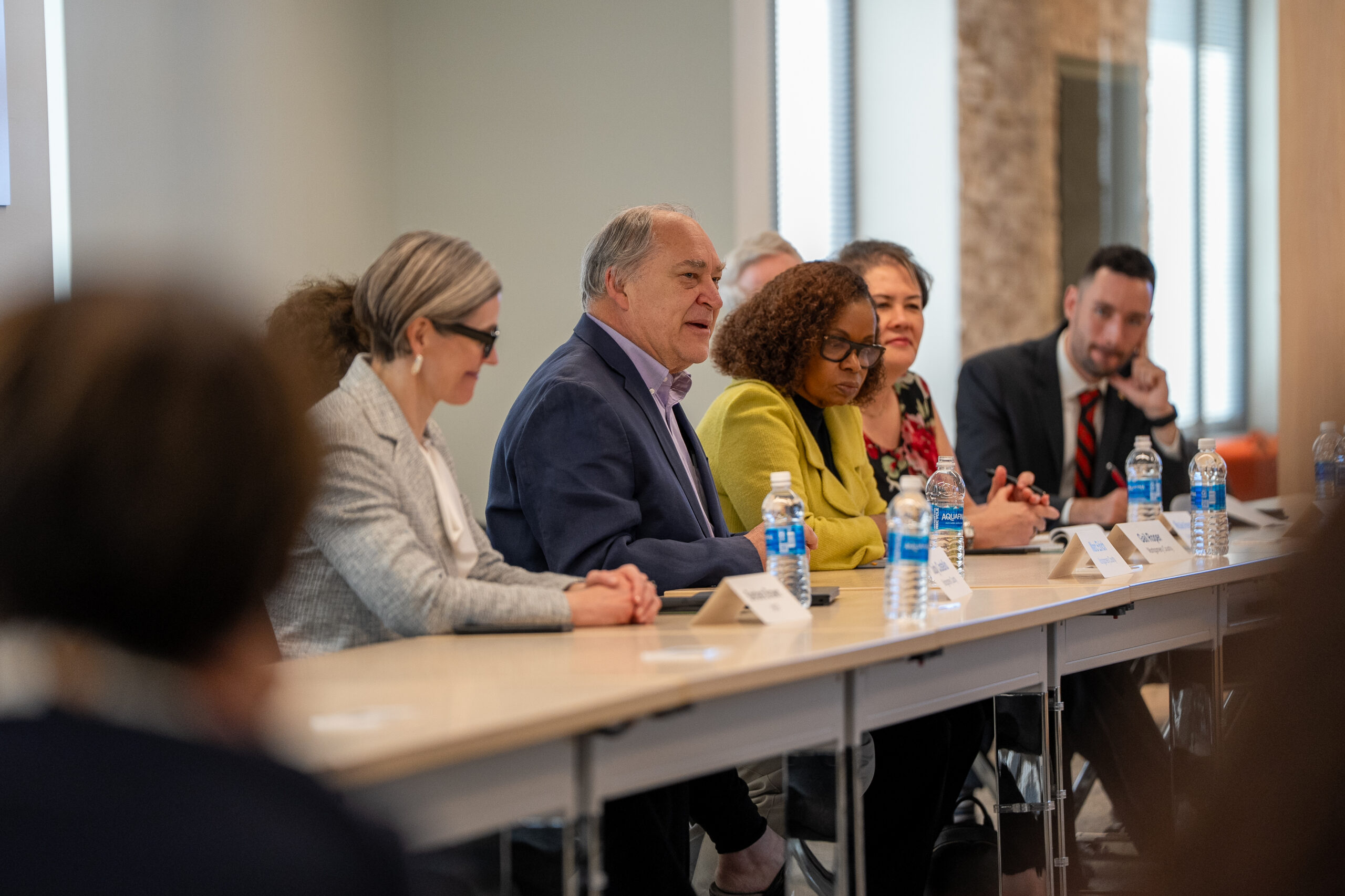 The University of Maryland Institute for Health Computing (UM-IHC) hosted Montgomery County Executive Marc Elrich on Tuesday, April 23, 2024, in its new North Bethesda offices. Elrich and his team were joined by representatives from federal agency National Institutes of Health (NIH) and companies Kaiser Permanente, US Pharmacopeia, and ThermoFisher.